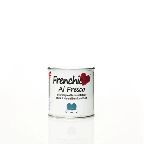 Frenchic Al Fresco – Steel Teal is a deep, dramatic blue-green with cool industrial undertones. This bold colour creates a striking modern finish while maintaining sophistication and depth.