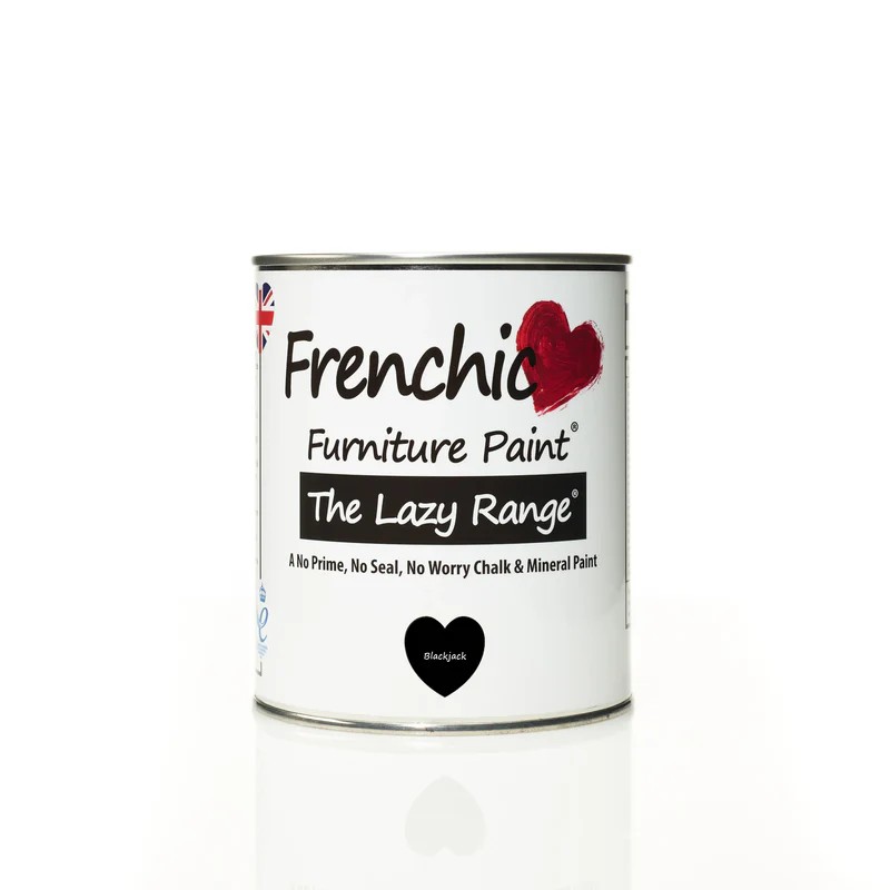Frenchic Lazy Range Blackjack is a true deep black chalk and mineral furniture paint with built-in wax infusion, designed for easy upcycling and durable interior finishes.