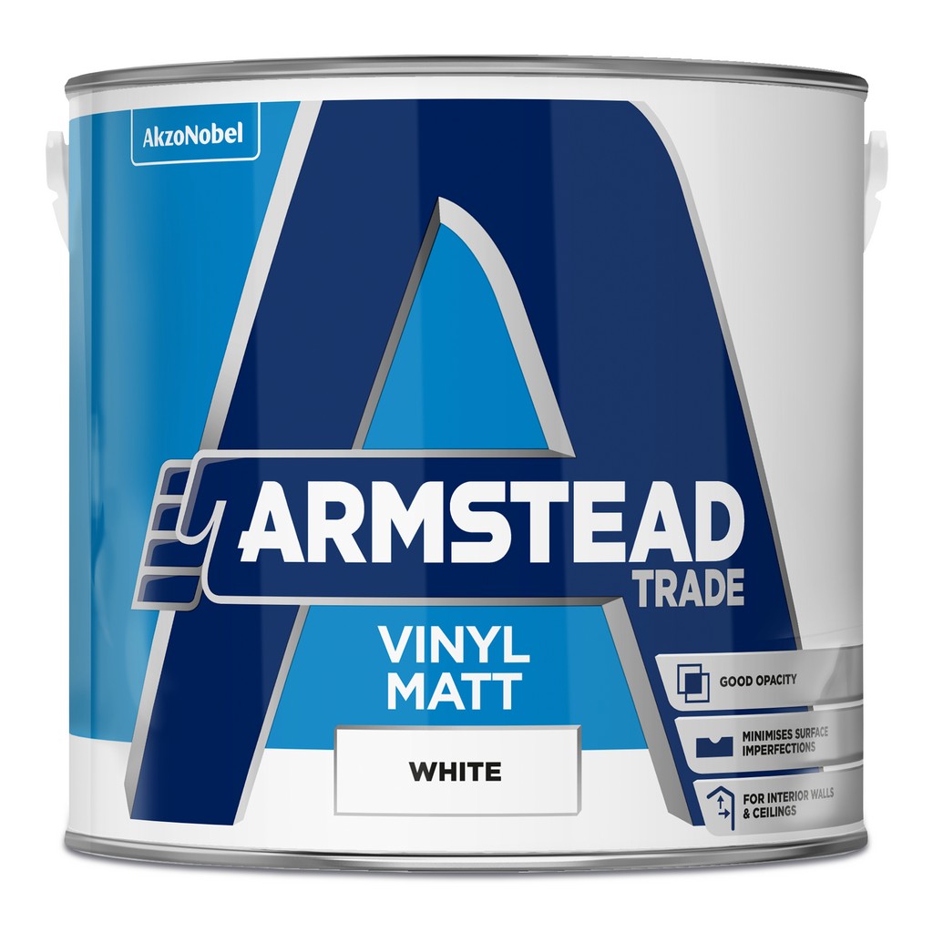 Armstead Trade Vinyl Matt Brilliant White is a high-quality, trade-grade emulsion paint specially formulated for interior walls and ceilings. Its vinyl matt finish delivers a smooth, non-reflective surface with excellent coverage and washability ideal for busy spaces in homes, offices and commercial environments.