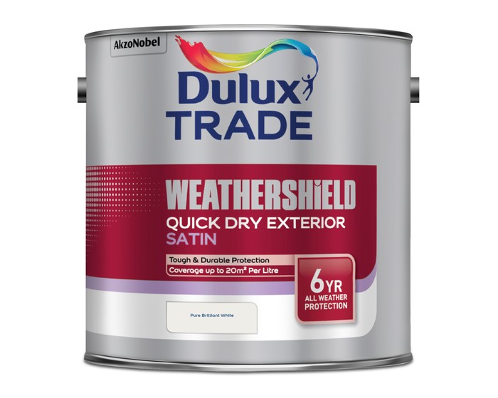 Water based exterior satin paint delivering long lasting weather protection and professional finish.